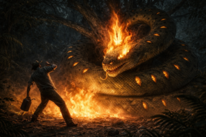 Dizem que a floresta muda de peso antes que ele apareça. O ar fica mais espesso. O silêncio deixa de