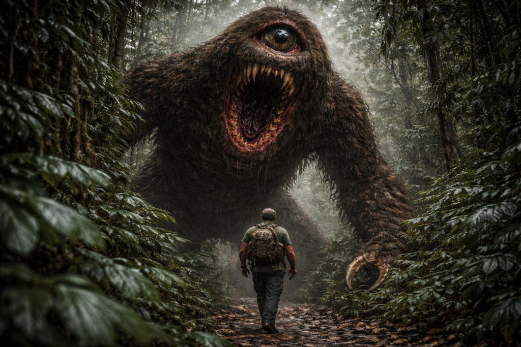 Uma das razões pelas quais o Mapinguari continua tão poderoso é que ele nunca ficou preso a uma descrição única. Em algumas narrativas, é um gigante coberto de pelos. Em outras, um ser de um olho só. Em algumas versões, a boca se abre no umbigo; em outras, o corpo inteiro já basta como imagem de horror. Há quem o associe a um guardião da mata. Há quem o descreva como devorador de homens. E é justamente essa instabilidade que o mantém vivo.